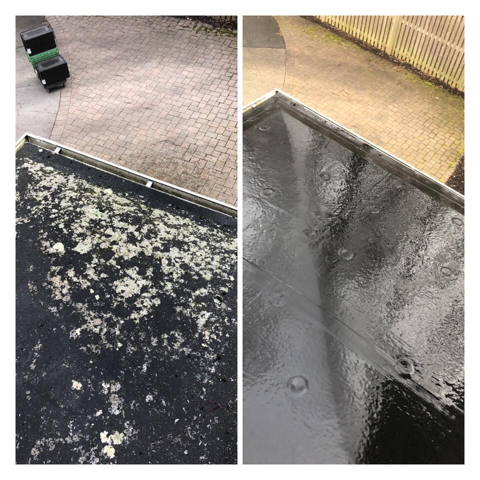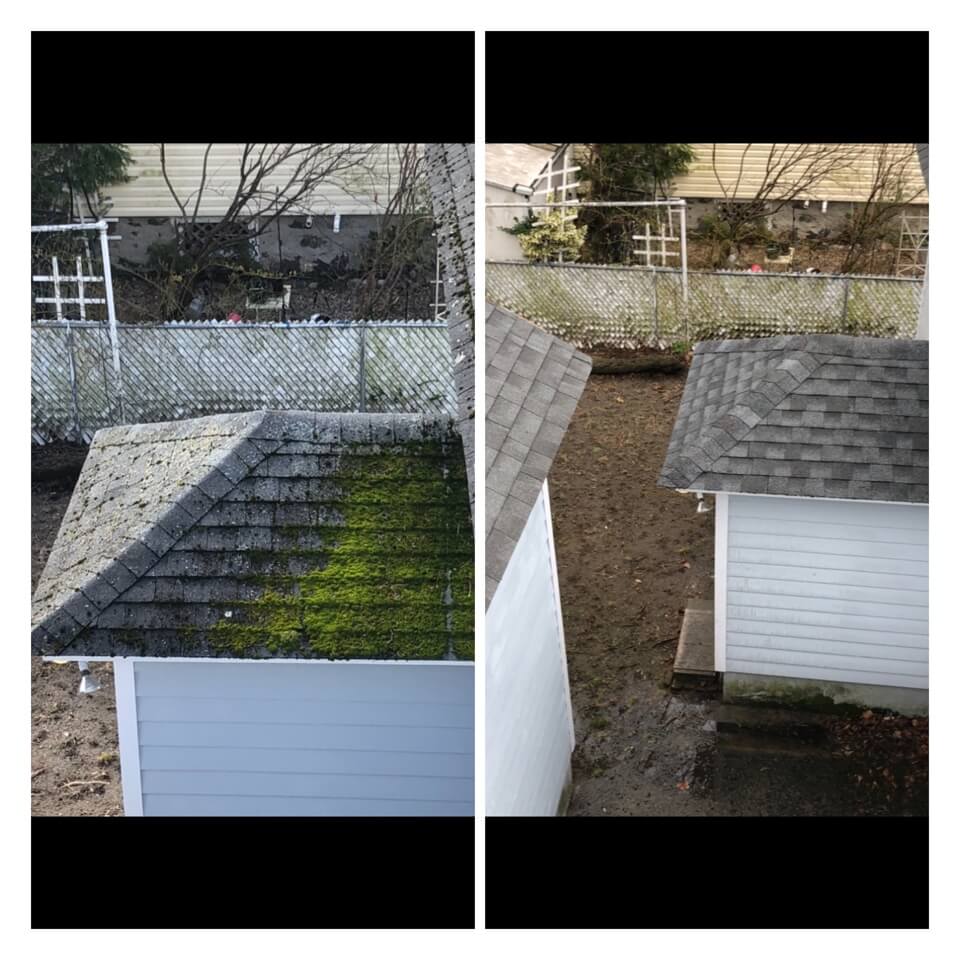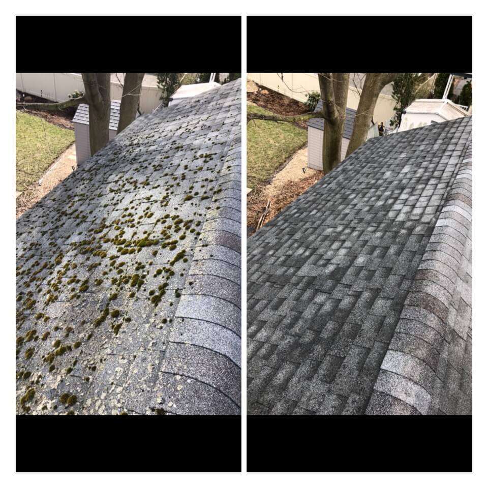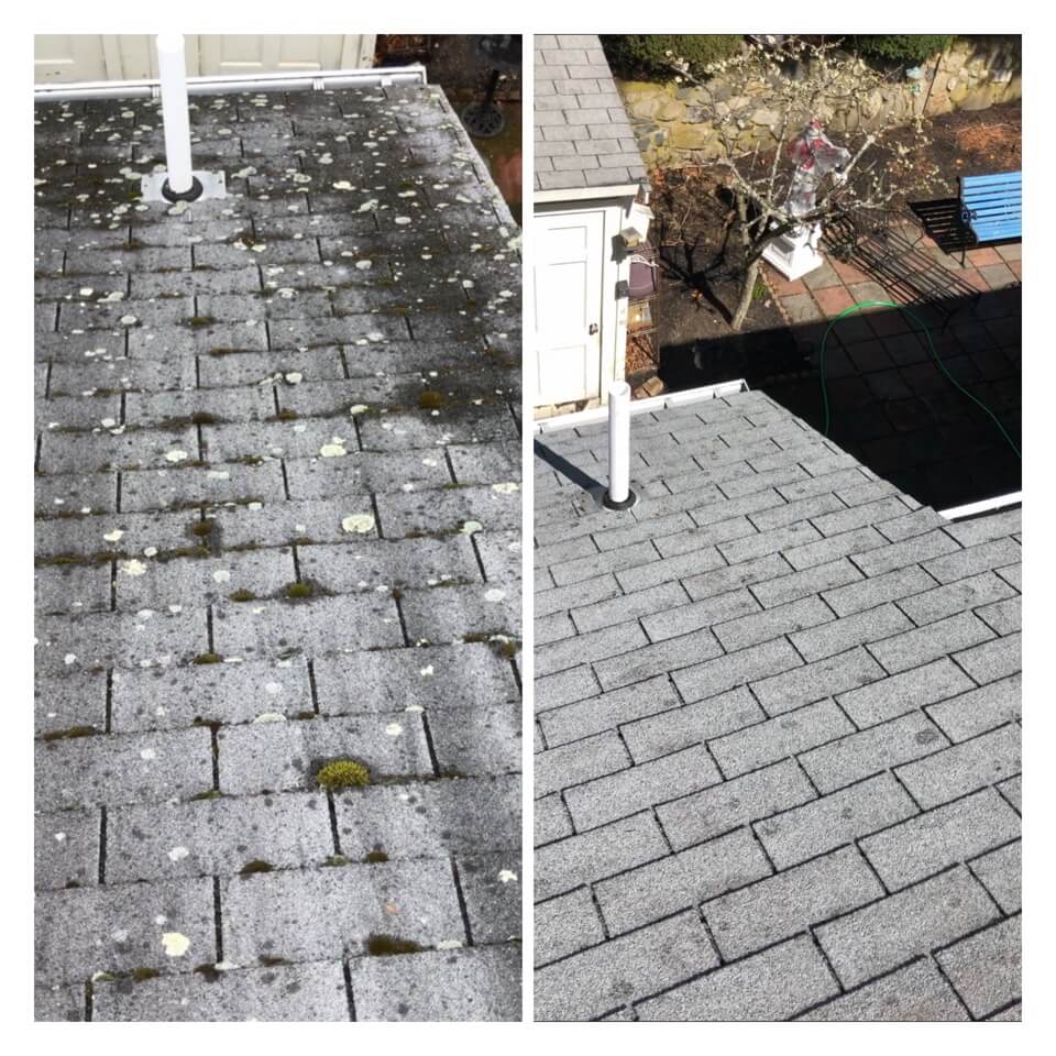 HiCleaners is the most experienced company in Middleton, MA that deals with roof washing and roof soft washing. All of our employees are trained to recognize precise solution mixing ratios to provide you with the safest and most effective soft washing service. Roofs are a commonly neglected part of a house due to the fact that most people don’t have ladders to access it, so it is very easy to just leave it alone and forget about problems that may start to arise. Just like many home owners, discoloration and small bits of moss on a roof can be overlooked because of the misconception that it is just aesthetic. However, it isn’t just aesthetic, the moss slowly lifts the granules off the shingles which in turn shorten the life of the shingle. The moss also spreads, just like any bacteria if it is left alone for too long, it can quickly become a problem that spirals out of control. Call HiCleaners for a free quote, we only use the most advanced eco-friendly solutions and equipment to make sure the job is done right, for the safety of the employees, your plants, grass, pets, and children.